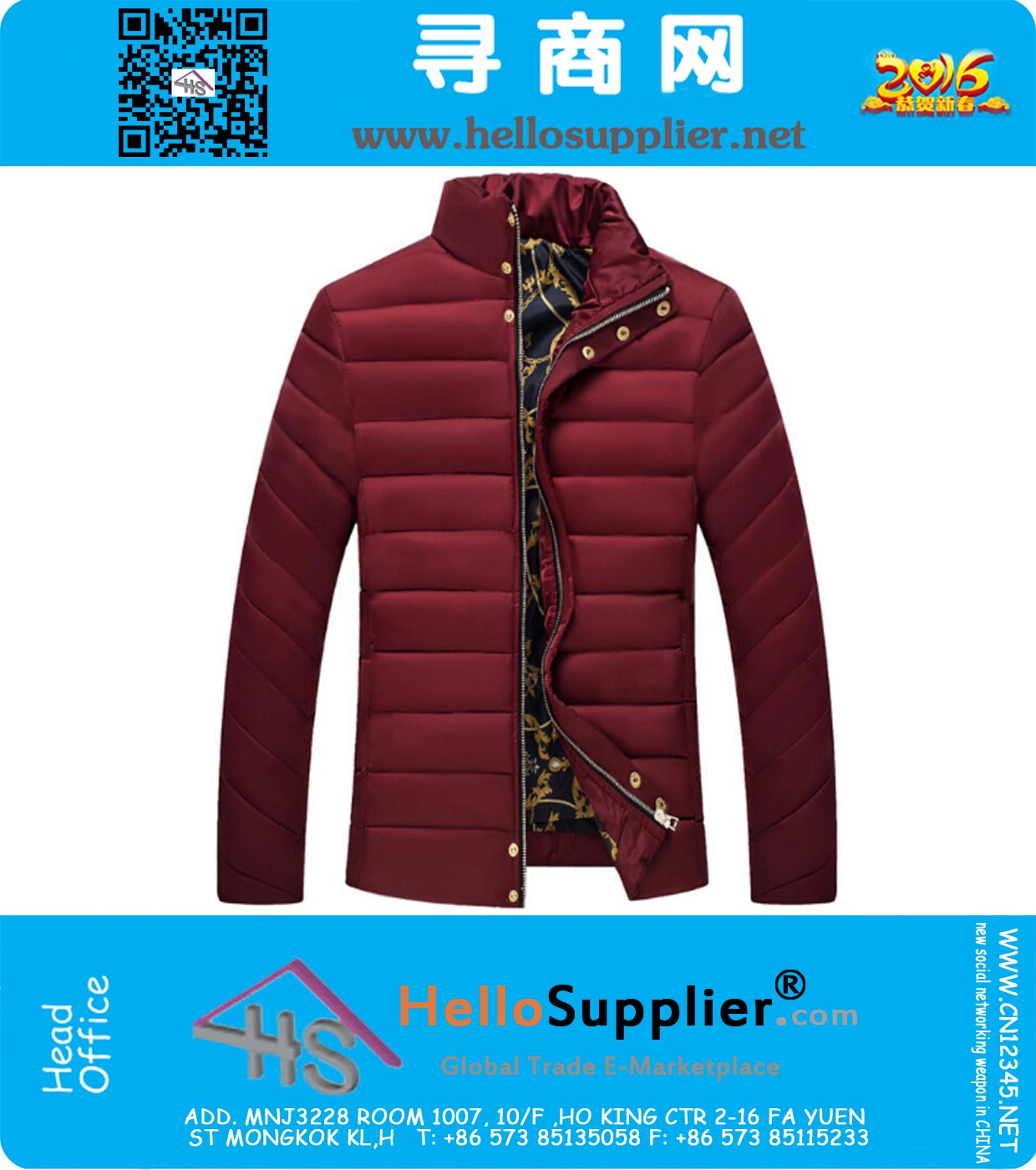 Winter jacket men stand collar thick fashion coat thick three color outdoor down cotton bomber clothing