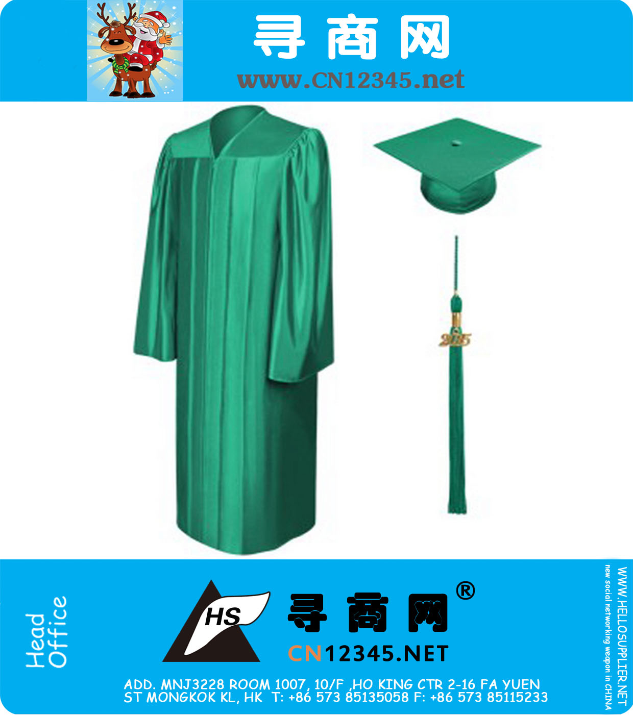 Economy Shiny Emerald Green Graduation Gowns Caps And Tassel